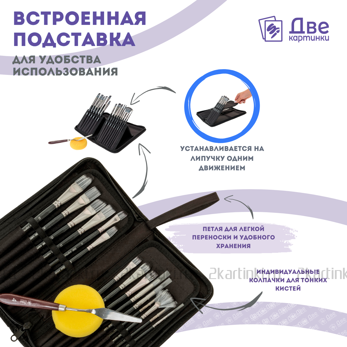 Оптом «Коробка 50 шт.: Набор кистей для рисования в чехле, премиум набор (15 нейлоновых кистей, 1 мастихин)» размером 4x29x15 см см. купить по выгодной цене 750 ₽ с доставкой по Москве и всей России.