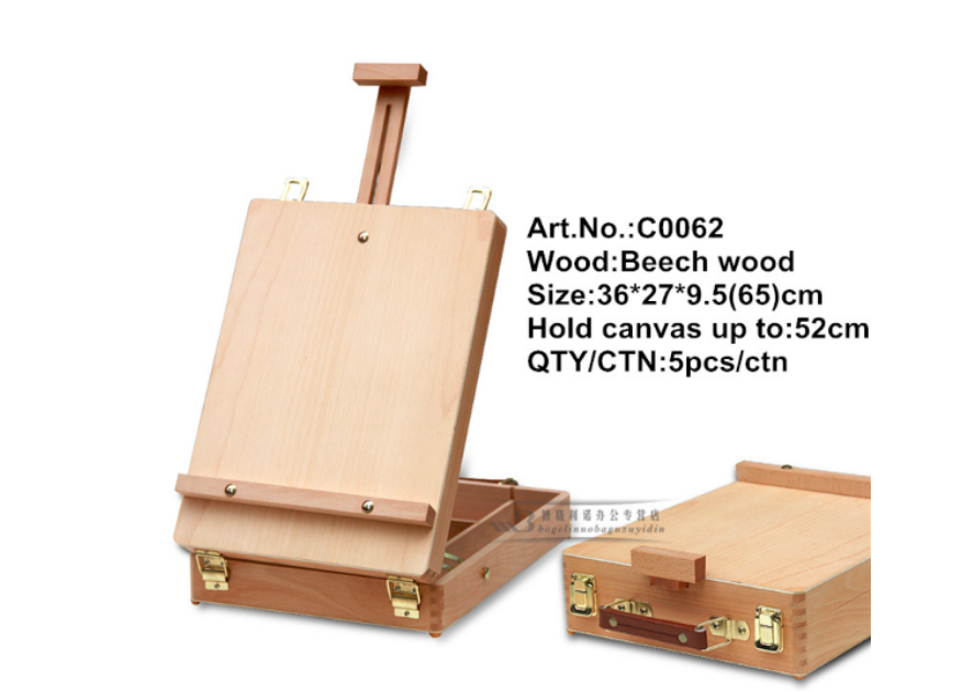 Художественный набор с настольным этюдником позволяет проводить художественную работу максимально удобно и эффективно. Мольберт изготовлен из прочного бука.
